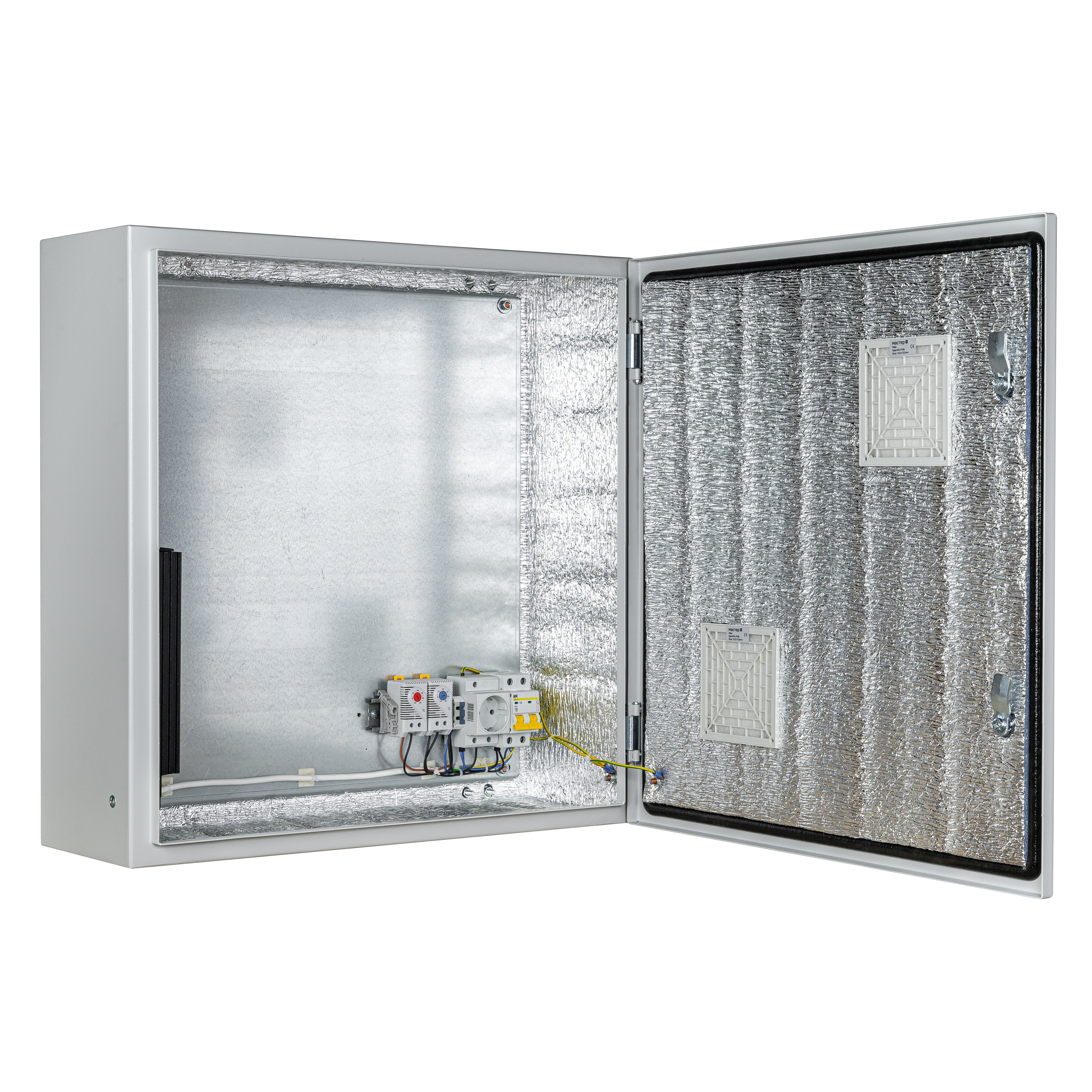 Климатический навесной шкаф Mastermann-4УТПВ-П+ (Ver. 2.0) IP 54 с вентиляторными решетками (пассивная вентиляция) и защитным реле от "холодного пуска".