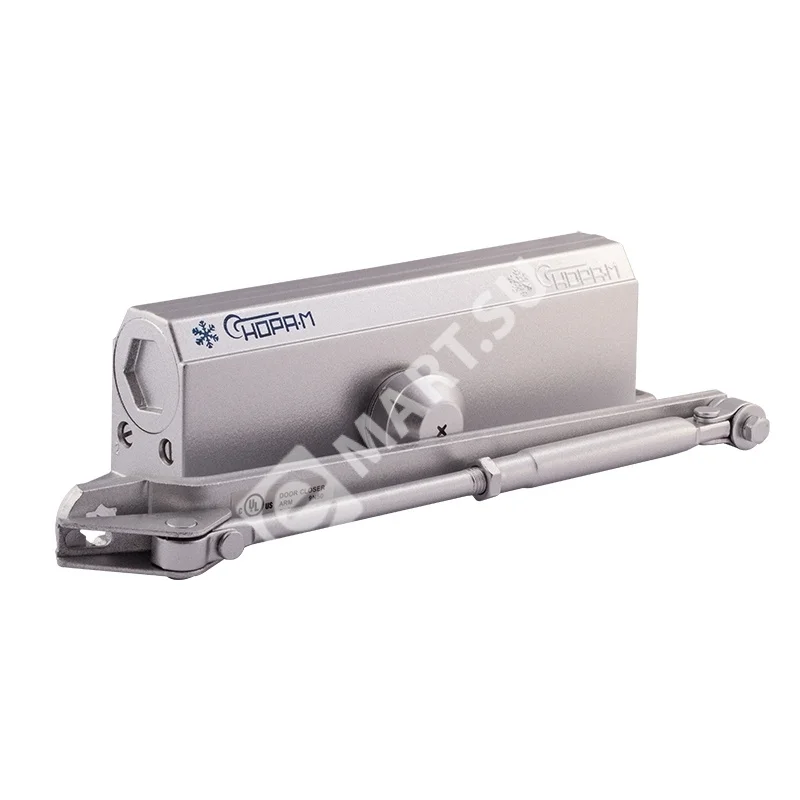 Модель 5S – доводчик дверной морозостойкий, предназначен для установки на входные металлические и другие тяжёлые двери (весом от 120 до 160 кг). Скорость закрывания двери при установке может быть отрегулирована в диапазонах от 180˚ до 18˚ и от 18˚ до 0˚ при помощи винтов на корпусе доводчика.