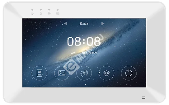 Монитор цветного видеодомофона 7", разрешение 1024x600, hands free, с поддержкой форматов CVBS и 720p/1080p (AHD/CVI/TVI) и функцией Wi-Fi (может работать в беспроводных или проводных сетях Ethernet). Адаптирован для работы с цифровыми многоквартирными домофонами. Возможность связи вызывных панелей с приложением "vhOme 2.2" для iOS и Android.