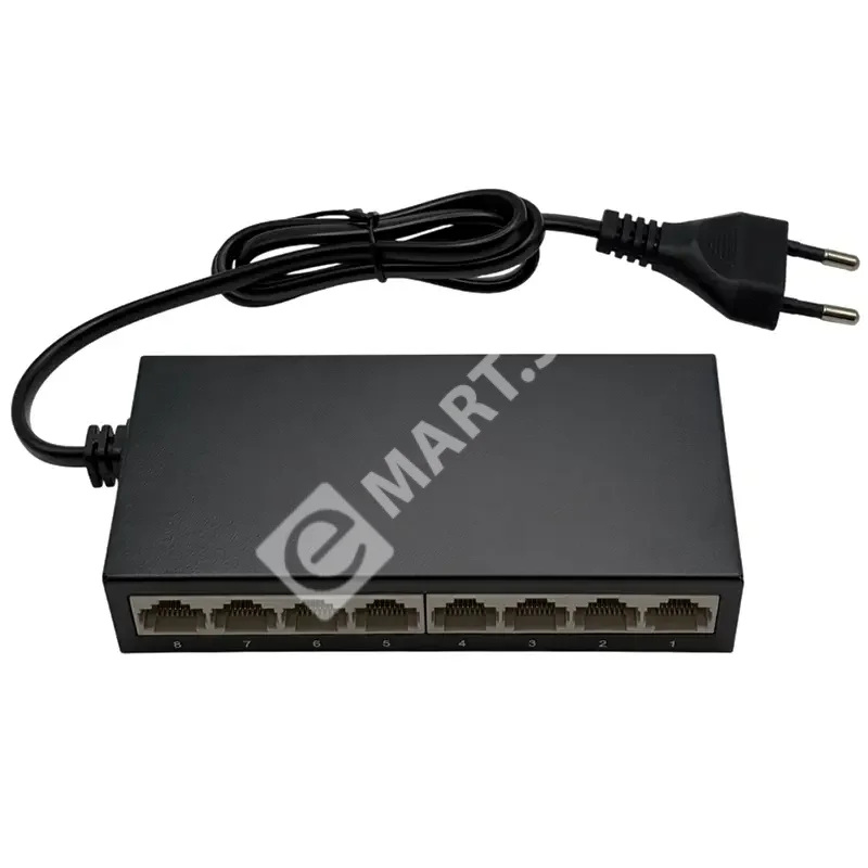 - Простота использования (Plug-and-Play): Коммутатор не требует настройки — достаточно подключить питание и сетевые кабели, и сеть готова к работе.