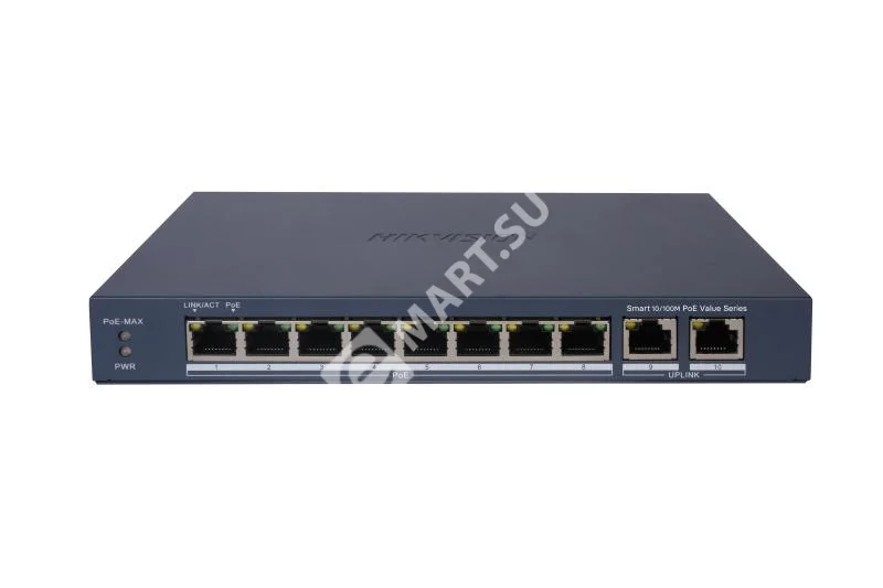 Неуправляемый PoE-коммутатор Hikvision DS-3E1310P-EI/M с 8 портами PoE+ и 2 гигабитными uplink портами